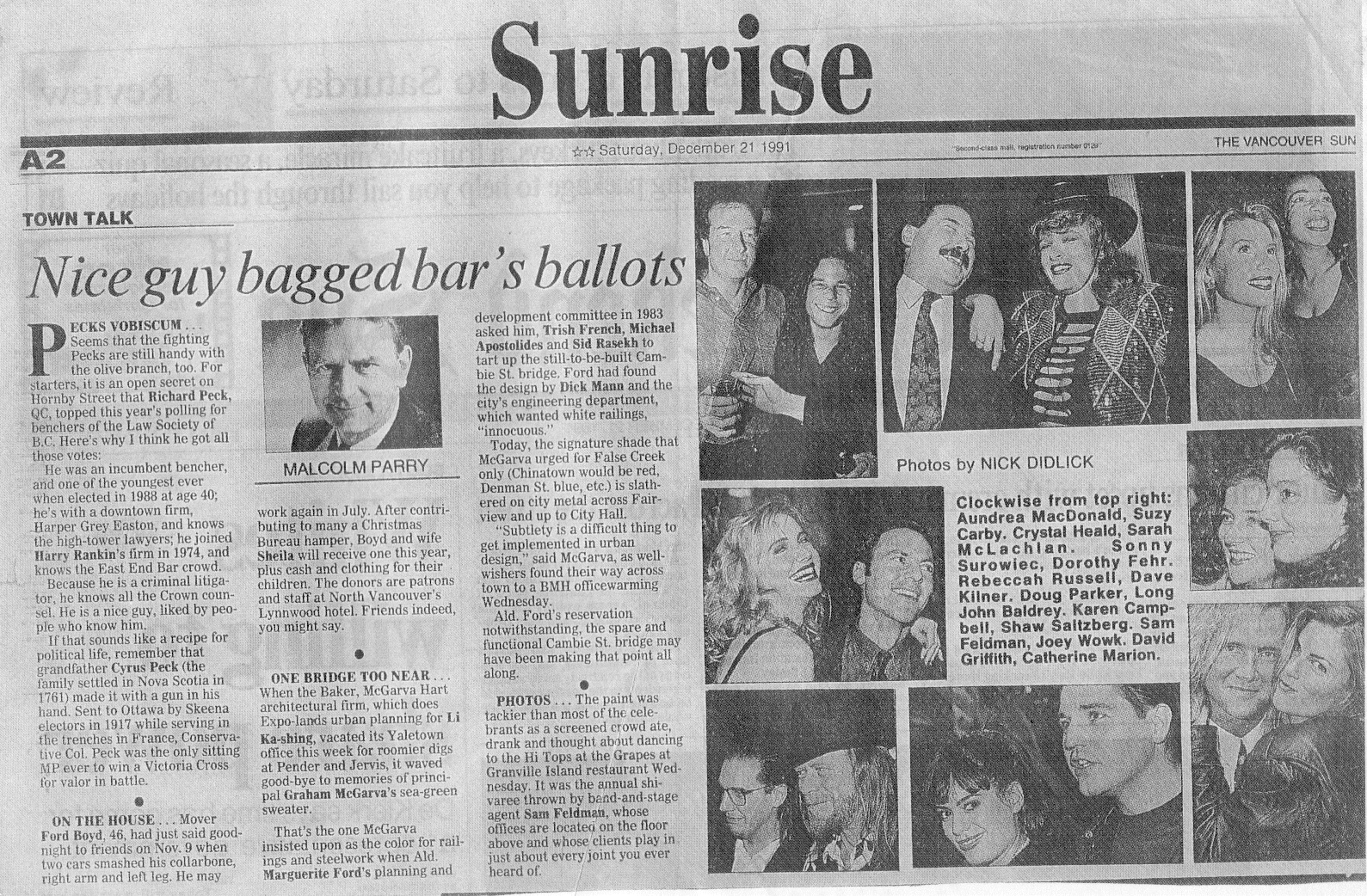 KTG & Malcolm Pary ('Town Talk' columnist - Vancouver Sun & Vancouver Magazine - see writeup)
